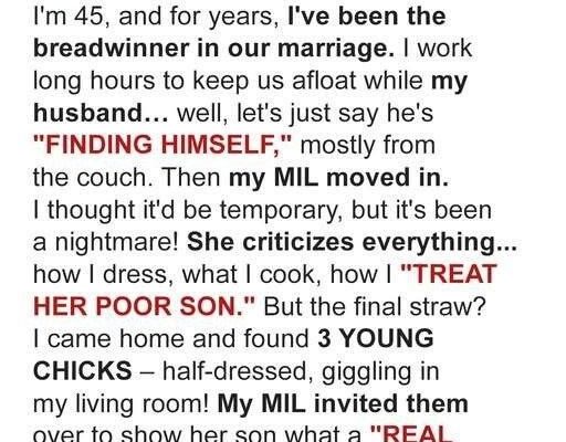 Then he arrived. My husband. He walked through the front door, briefcase in hand, and stopped dead. His eyes went from me, to his mother, to the three strange women. His face crumpled. HE LOOKED LIKE A DEER CAUGHT IN HEADLIGHTS.