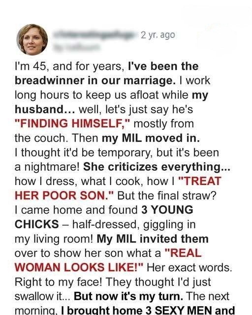 For the next few weeks, I played along. I encouraged the women to spend time with my husband. I cooked their favorite meals. I became the perfect, accommodating wife, the one who understood her shortcomings and graciously stepped aside. My MIL glowed. She brought them clothes, arranged outings, even talked about potential engagement parties. My husband looked increasingly miserable, but he didn’t stop her. He just looked at me with a silent plea in his eyes, a plea I ignored.