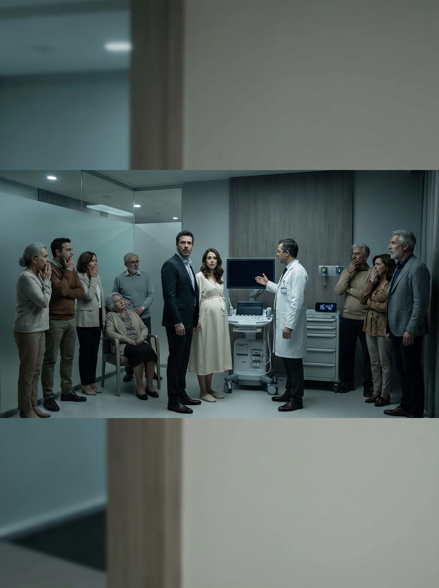 “I need everyone to prepare themselves,” the doctor finally said, her voice dropping into a careful, deeply measured professional register that instantly sent a cold, terrifying chill cascading down the spine of every single person packed into that tiny room. She clicked a button on the sophisticated machine, entirely freezing the dark, empty image on the screen, and turned to face David and Clara, her expression completely devoid of the joyful, effusive congratulations she customarily delivered during these emotionally charged appointments. “Clara, according to the timeline you provided and the hormone levels you reported, you should be nearly twelve weeks along, but I am looking at an entirely empty uterus; there is absolutely no evidence of a gestational sac, a fetal pole, or a pregnancy of any kind.” The incredibly sharp, devastating words hung heavily in the sterile, air-conditioned air like a suspended guillotine blade, completely shattering the meticulously constructed, incredibly fragile reality David had foolishly sacrificed his entire family to build.