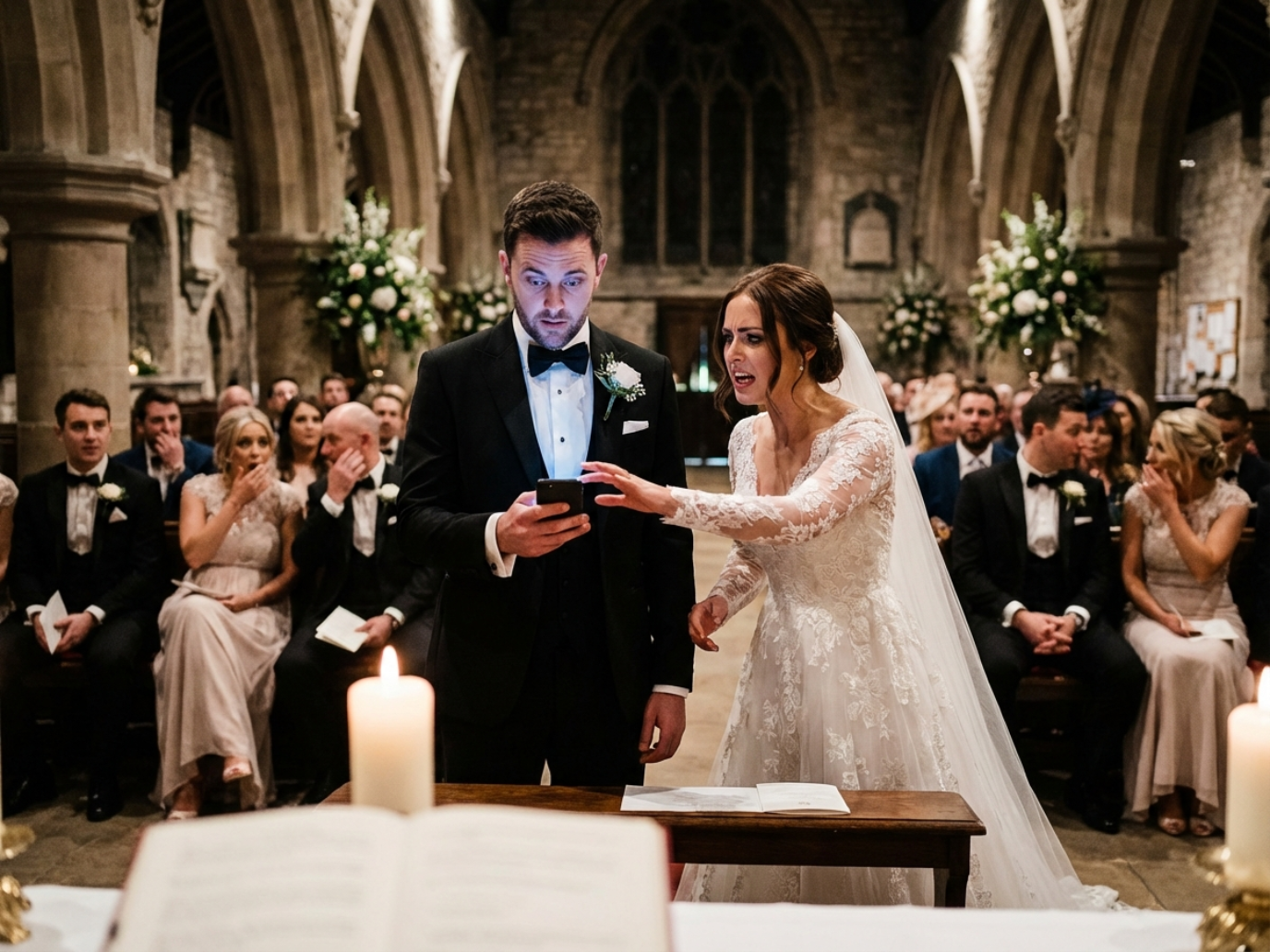 Vanessa was now standing just a few feet away from the altar, her manicured hand gracefully extended toward the man she intended to legally trap. The faint, triumphant gleam in her calculating eyes instantly vanished, rapidly replaced by a sudden, terrifying confusion when Daniel refused to reach out and take her hand. He slowly raised his head, his face completely drained of all healthy color, his eyes burning with a potent, explosive mixture of profound heartbreak and absolute, unadulterated fury. He didn’t offer a polite whisper or attempt to save her public dignity; he simply turned the volume on his smartphone all the way up to its maximum capacity. The church’s magnificent acoustics amplified Vanessa’s own recorded voice, dripping with pure malice and undeniable greed, echoing loudly and devastatingly through the completely dead-silent, utterly paralyzed sanctuary for everyone to hear.