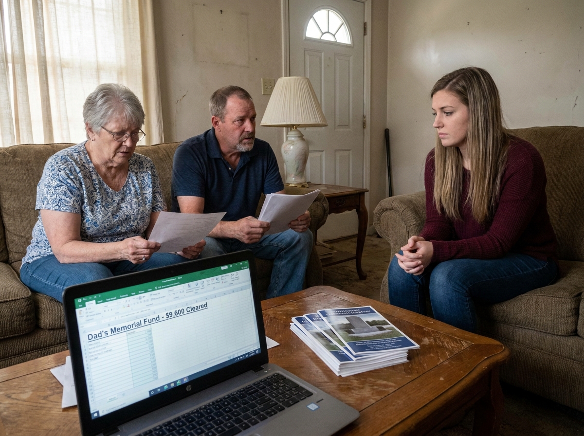 The morning after my father’s funeral, my sister stood in his kitchen holding a legal pad and speaking in that calm, practical tone people use when they want authority to sound like grief. She said the donations from the memorial service would be “handled centrally,” that she would pay the cemetery, the stone engraver, and the church lunch bill once everything settled. By then, friends, old coworkers, neighbors, and men from Dad’s union hall had given more than $9,600 in cash and checks to help cover burial costs and the final months of home hospice. Ten days later, the headstone deposit had not been paid, the church secretary was calling twice a day, and my sister had quietly used the money to catch up her mortgage, settle two maxed-out credit cards, and book herself what she later called “a necessary reset weekend” at a coastal hotel.
