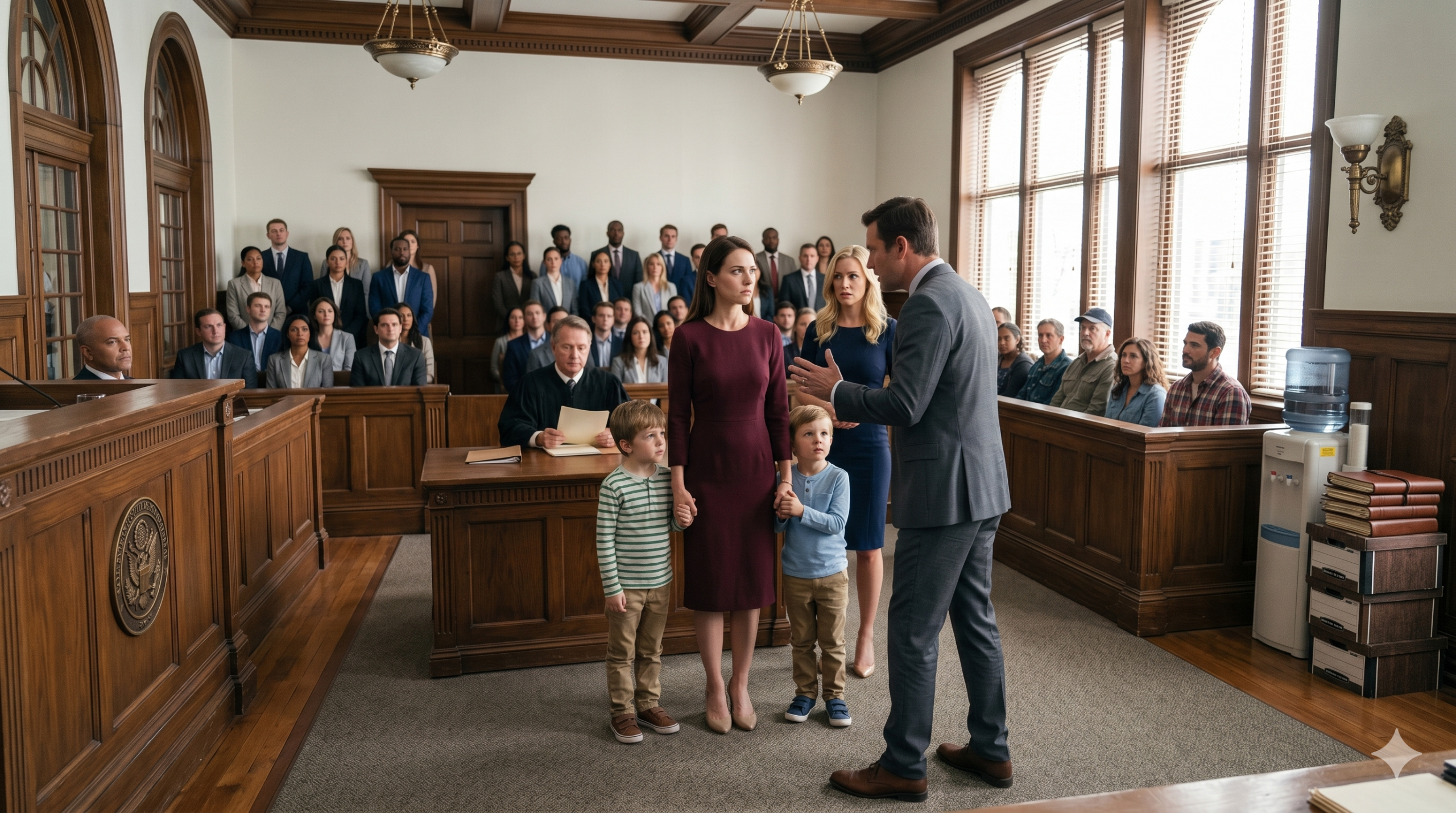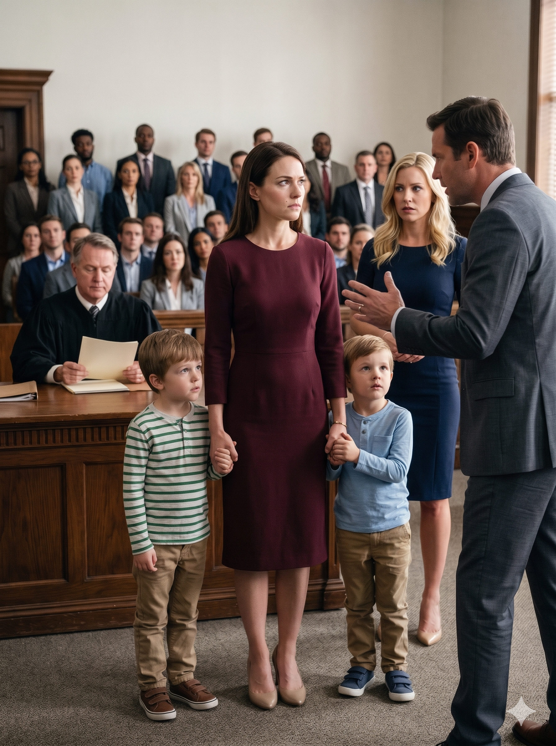 Step by step, she made her way to the front, stopping before the judge with the twins still holding onto her hands. Their quiet presence filled the room more than any words could.