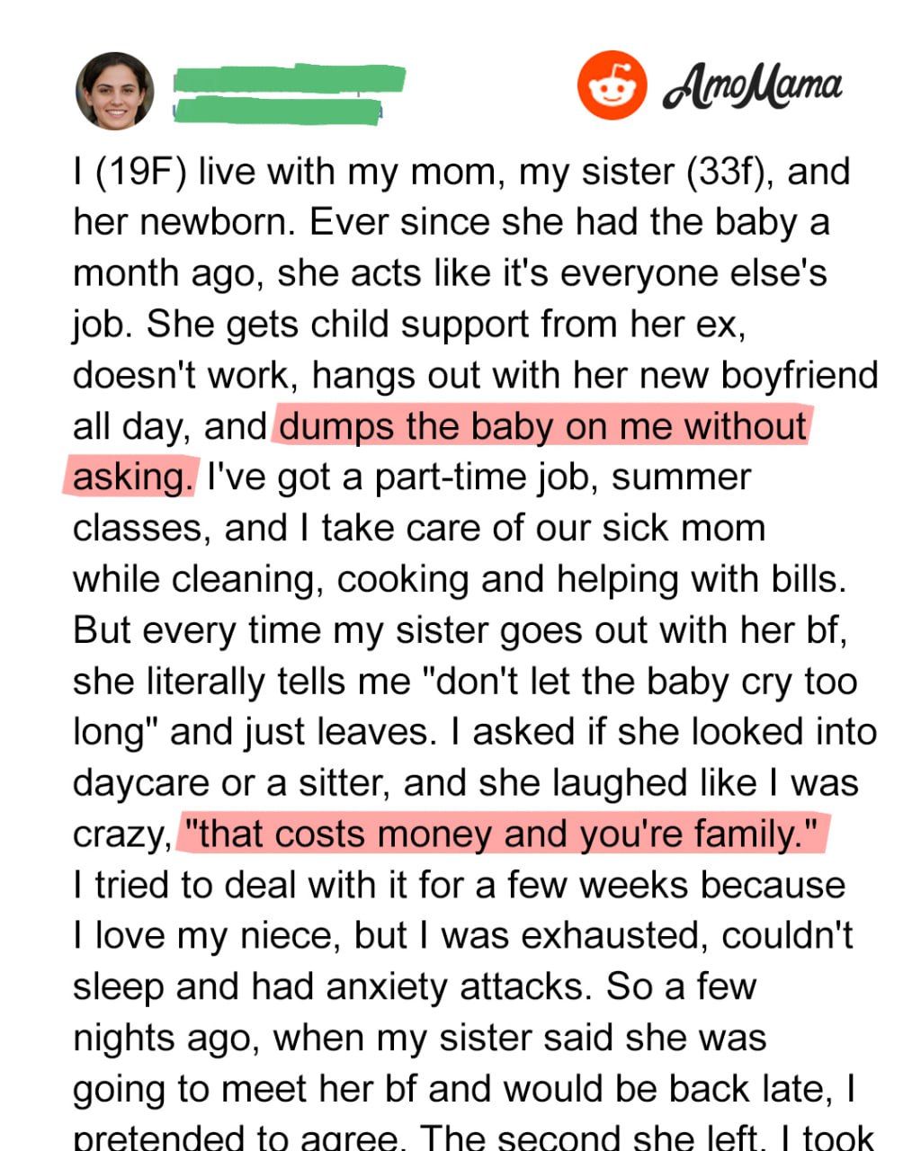 My sister, Abby, is 32, single, and lately acting like she’s 20 and child-free. She had Rosie with a man who vanished the moment the second line showed up. Since then, she moved back into our family’s house and let the rest of us pick up the slack.