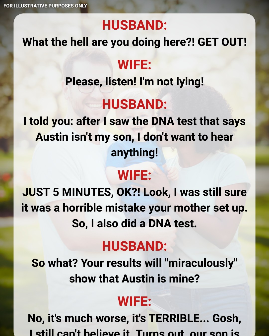 “No, Paul! You have to believe me! Austin is your son! I’ve never been unfaithful!” I cried in despair.