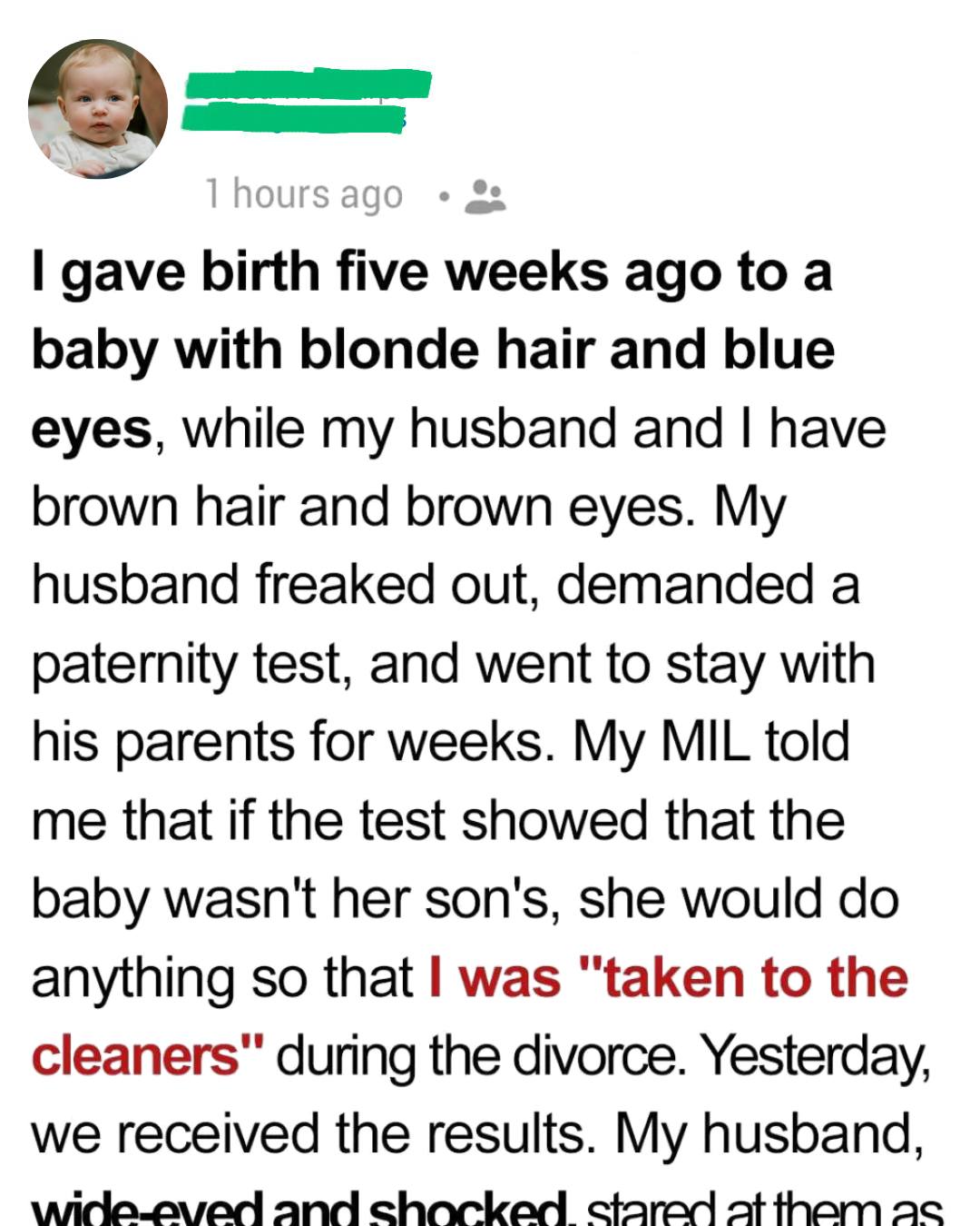 She arrived with bright blonde hair and vivid blue eyes—features neither my husband nor I have. The contrast surprised me, but it sh0cked him, and instead of talking to me, he let his fear grow louder than reason.