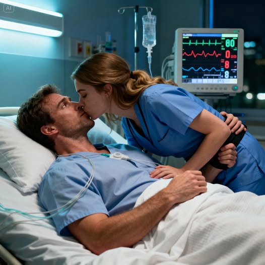 The room felt impossibly heavy with silence. A tear slipped down her cheek. On impulse — a reckless, foolish impulse — she leaned in and pressed her lips softly to his. A kiss that wasn’t meant to be romantic, only… human. A goodbye she never got to say.