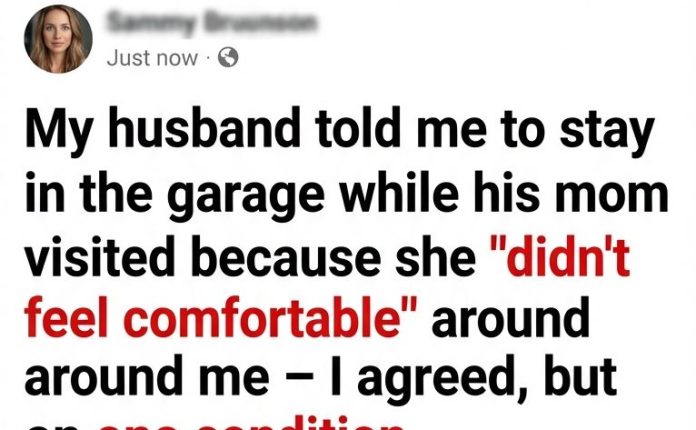 My Husband Told Me to Stay in the Garage While His Mother Visited Because She ‘Didn’t Feel Comfortable’ Around Me – I Agreed, but on One Condition February 11, 2026 - by Reading Times … My Husband Told Me to Stay in the Garage While His Mother Visited Because She ‘Didn’t Feel Comfortable’ Around Me – I Agreed, but on One Condition Read More