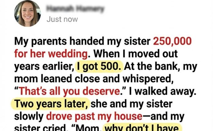 Betrayal & Redemption / Family Drama Stories / True-to-Life StoriesMy Mom Gave My Sister $250,000 For Her Wedding—Then Said I Deserved $500. Two Years Later, They Saw My House March 2, 2026 - by Reading Times … My Mom Gave My Sister $250,000 For Her Wedding—Then Said I Deserved $500. Two Years Later, They Saw My House Read More