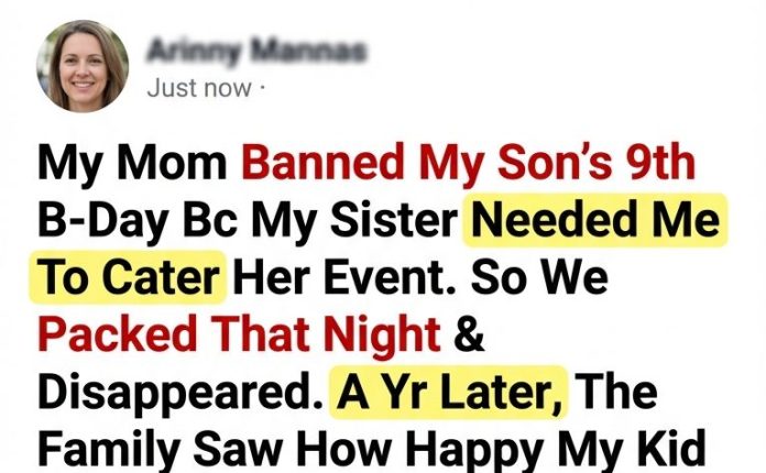 Betrayal & Redemption / Family Drama Stories / True-to-Life StoriesMy Mom Canceled My Son’s 9th Birthday For My Sister’s Fundraiser—So We Vanished Overnight, And Her Jealous Meltdown Went Public March 2, 2026 - by Reading Times … My Mom Canceled My Son’s 9th Birthday For My Sister’s Fundraiser—So We Vanished Overnight, And Her Jealous Meltdown Went Public Read More