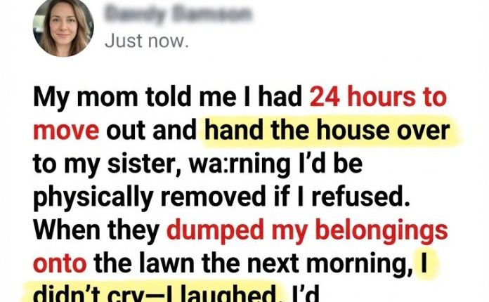 Betrayal & Redemption / Family Drama Stories / True-to-Life StoriesMy Mom Gave Me 24 Hours to “Hand Over” the House—So I Let Them Toss My Stuff Outside, Then Played My Card March 1, 2026 - by Reading Times … My Mom Gave Me 24 Hours to “Hand Over” the House—So I Let Them Toss My Stuff Outside, Then Played My Card Read More
